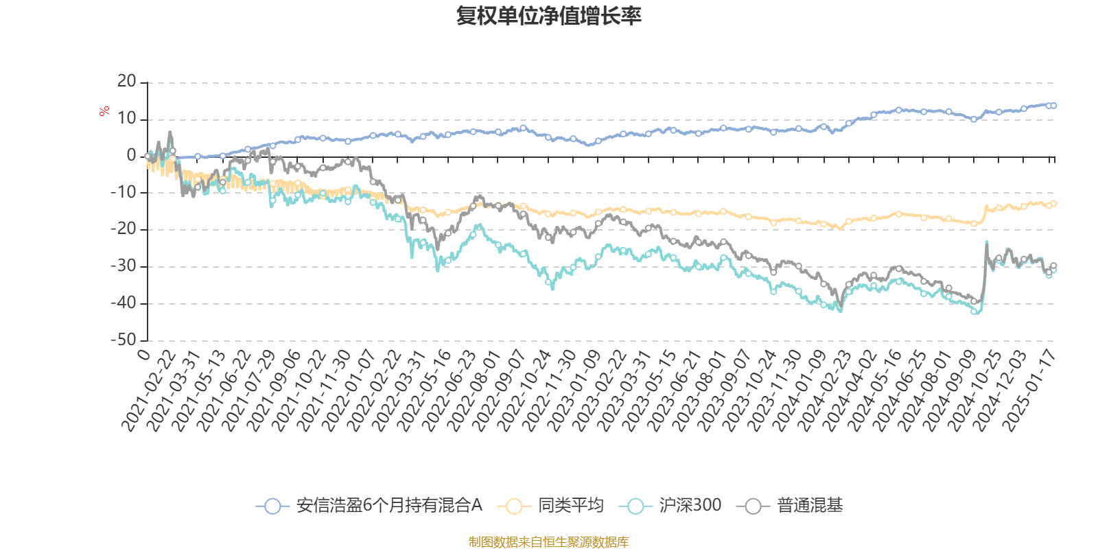 截至1月17日,安信浩盈6个月持有混合A近三个月复权单位净值增长率为1.75%,位于同类可比基金299/670;近半年复权单位净值增长率为1.29%,位于同类可比基金575/670;近一年复权单位净值增长率为6.30%,位于同类可比基金344/664;近三年复权单位净值增长率为7.82%,位于同类可比基金85/521。
